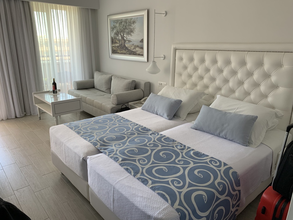 Nach circa 1 Stunde Busfahrt erreichen wir Rethymnon und checken in unser Übernachtungshotel Rethymno Palace ein, ein durchschnittliches 5 Sterne-Hotel in direkter Strandlage.